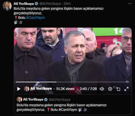 Kaynak: X/Ali Yerlikaya