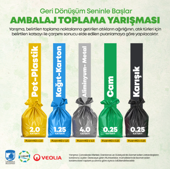 Ambalaj Toplama Yarışması, Çanakkale Merkez, Dardanos ve Güzelyalı'da ikamet eden çocuklar (ebeveyn eşliğinde) ve yetişkinlerin katılımına açık olacak.